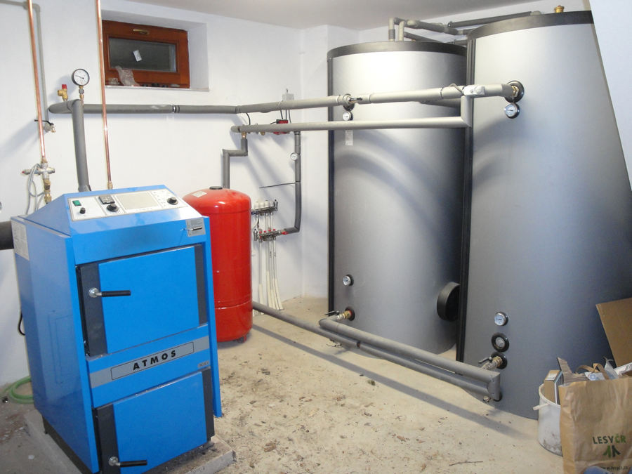 Při rekonstrukci kotelny rodinného domu v Dědicích jsme instalovali nový zplynovací kotel na dřevo ATMOS DC 25S spolu s akumulačními nádržemi.