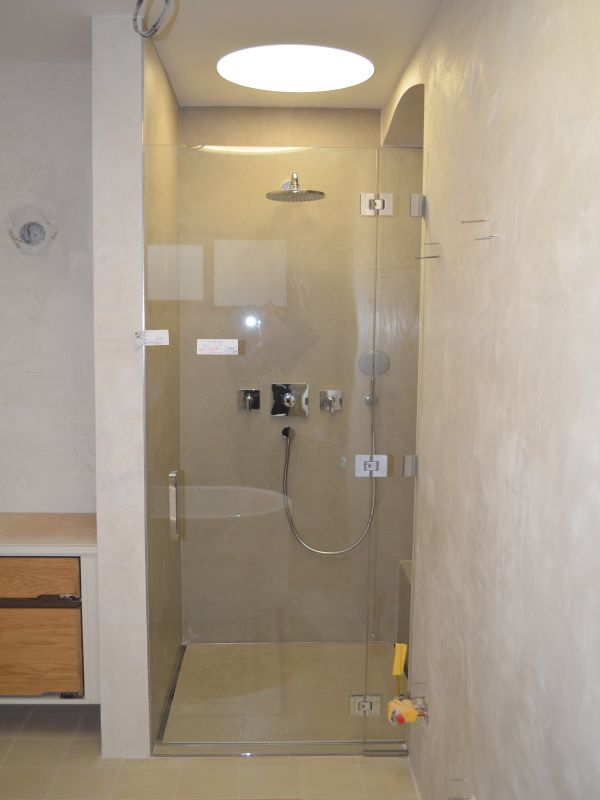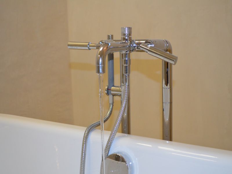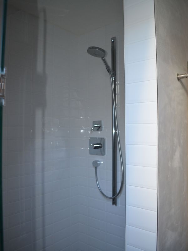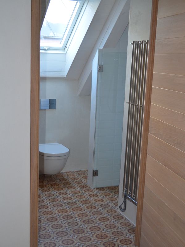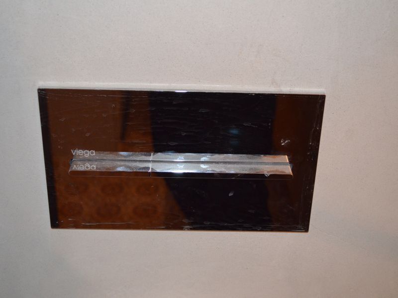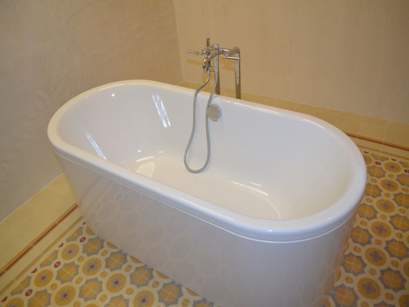 Ze zařizovacích předmětů byla instalována vana do prostoru Kaldewei, vanová baterie Zazzeri Dada, sprchové a umyvadlové baterie Hansgrohe, odtokové žlaby Viega, keramika Duravit.