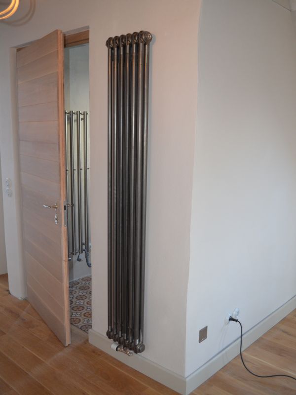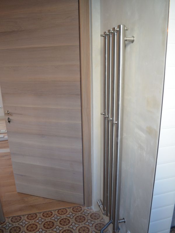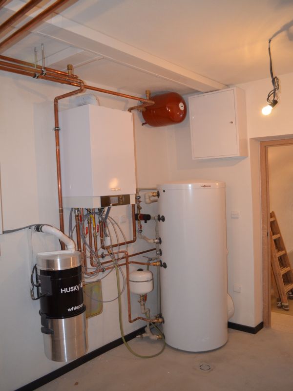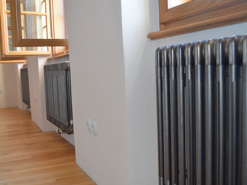 Zdrojem tepla je sestava kotle Viessmann Vitodens 300-W spolu s ohřívačem Vitocell V-300. Otopná tělesa byla instalována od společnosti ARBONIA spolu s žebříky od společnosti P.M.H.